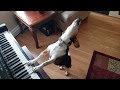 Buddy is trying his paws out on a baby grand for the first time at his good friend's house!